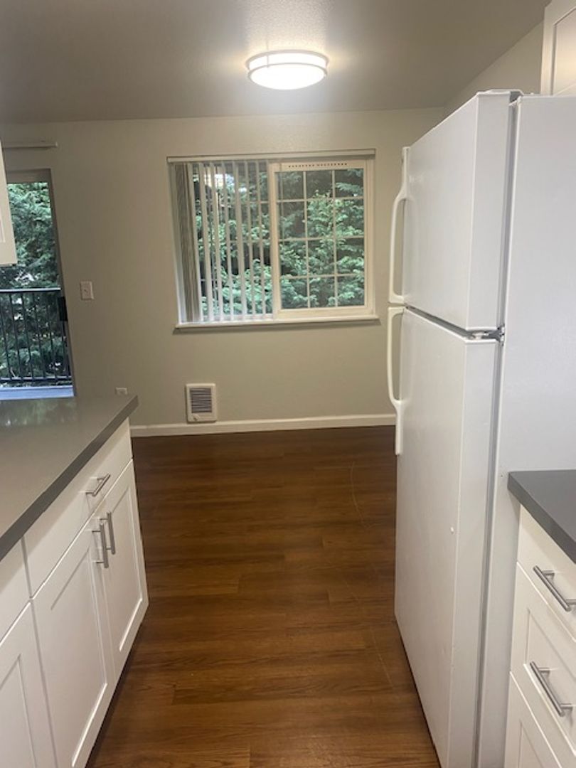 Situated on a beautiful campus, this secluded apartment features, Vinyl plank flooring throughout the main living spaces, and carpet in the bedroom! New paint, Washer, Dryer, and doors. The floor plan maximizes the use of space and delivers a great living environment. Sit on your back deck or patio and enjoy the view!