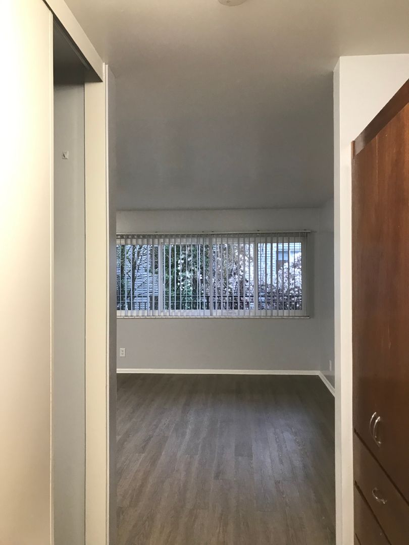 Charming Studio with Original Built -In Storage, classic tiled bathroom, and expansive windows! Enjoy the generous balcony for gardening, relaxing, and entertaining. The well equipped kitchen features an island with ample storage, stove with hood vent, refrigerator, and spacious sink.